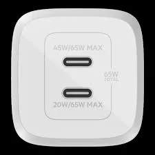 Équipé de deux ports USB-C, le Belkin chargeur secteur double port USB-C 65 W permet de recharger simultanément deux appareils, tout en répartissant intelligemment la puissance selon les besoins de chacun. Il prend en charge la technologie Power Delivery 3.0, garantissant une charge rapide, stable et sécurisée. La technologie GaN (nitrure de gallium) améliore l’efficacité énergétique tout en réduisant la taille du chargeur et la chaleur générée.